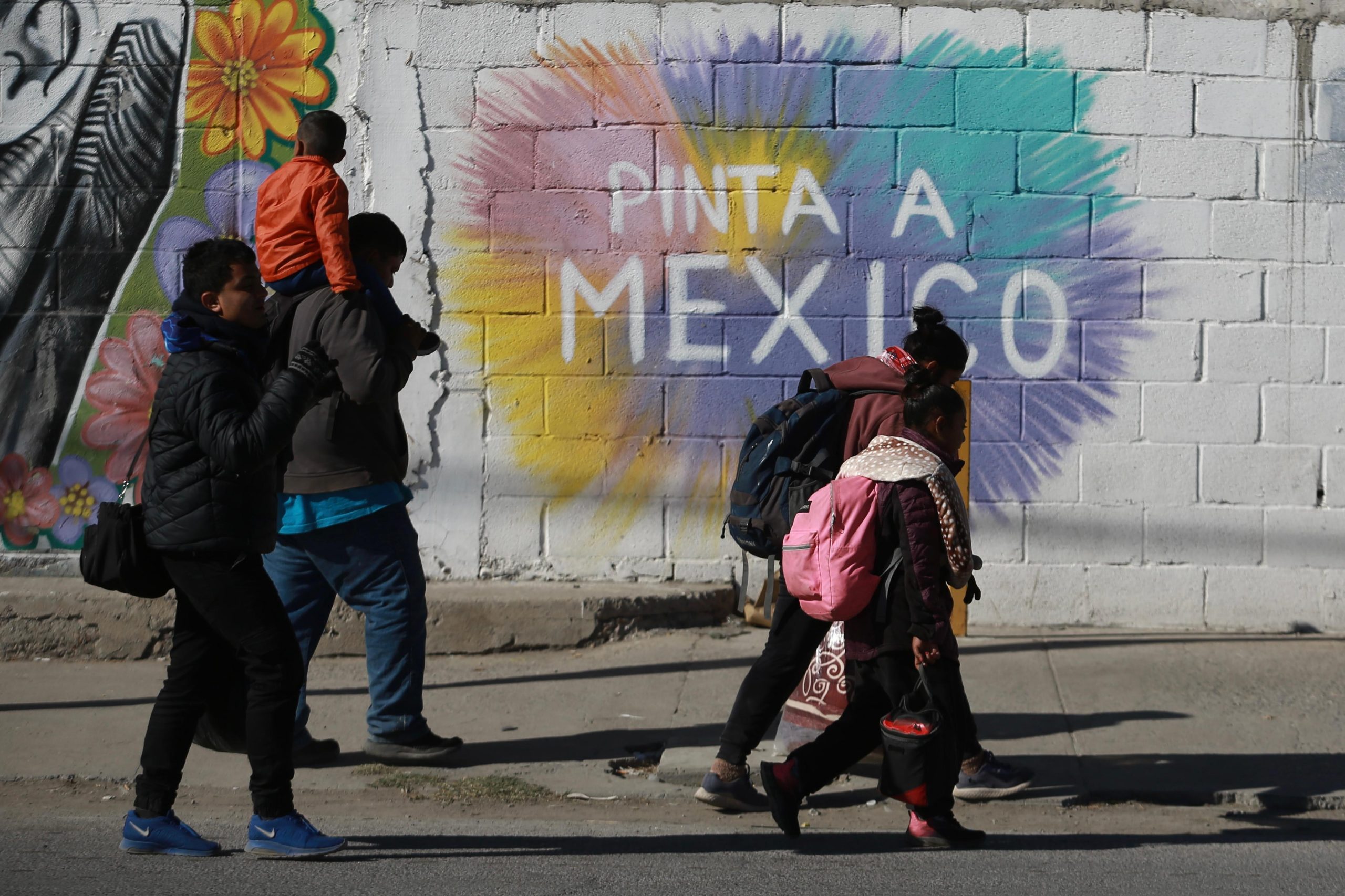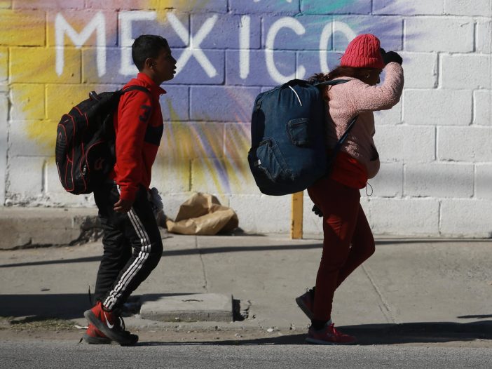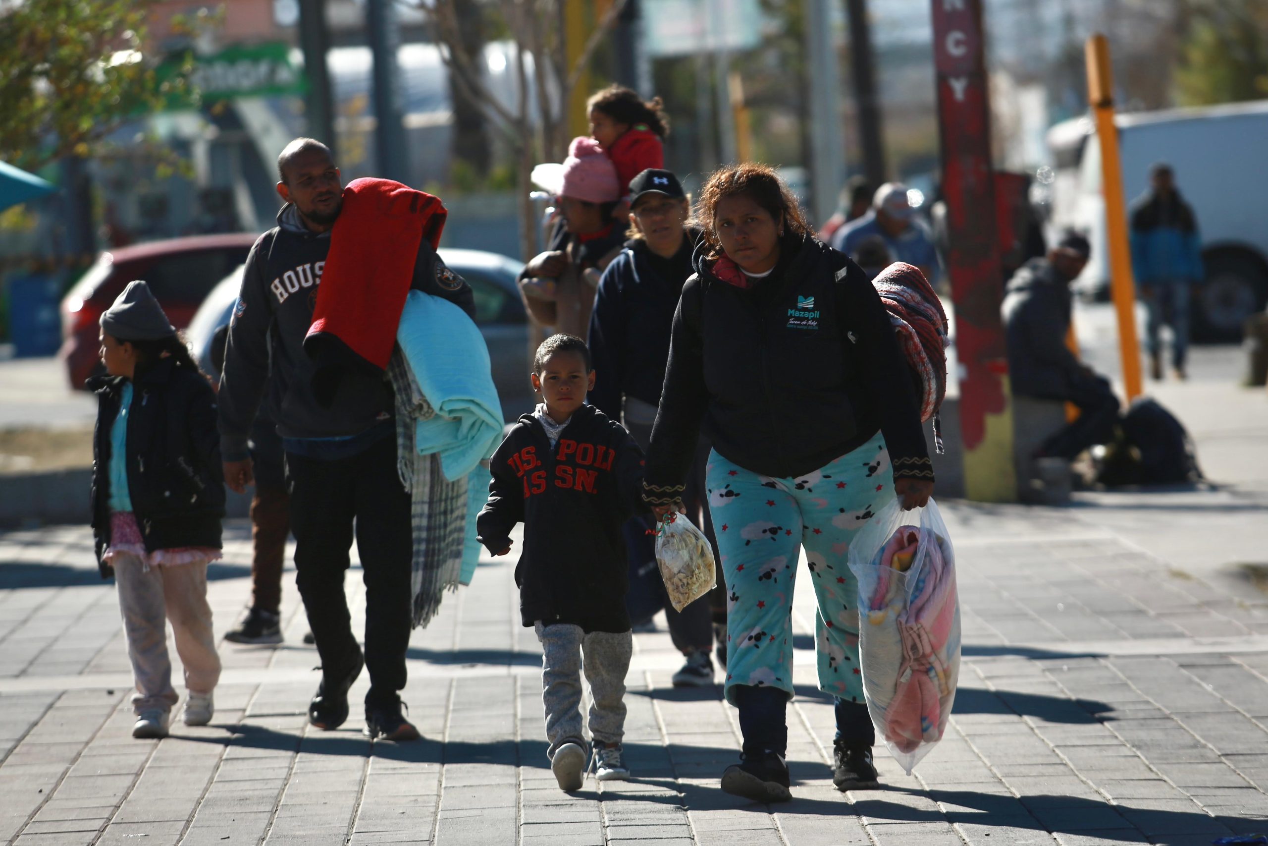 El convoy humano está conformado por varias familias y hombres solos que buscan solicitar el asilo en el vecino país, entregándose a las autoridades en el muro fronterizo.