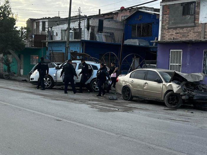 La persecución terminó en el cruce de las calles 16 y Matamoros, donde los pistoleros perdieron el control del vehículo y terminaron dentro de una cochera, donde chocaron a otros autos.