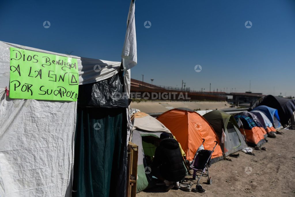 Desde el 25 de octubre, no hay día igual al anterior en la orilla del río Bravo en Juárez. Ayer no fue la excepción. La carpa inmensa que habían instalado desde la semana pasada ya no estaba, ni los baños portátiles que venían con ella. Había en su lugar una retroexcavadora y un camión de escombro, y miles de partículas olorosas ensuciaban el viento cercano al campamento migrante.