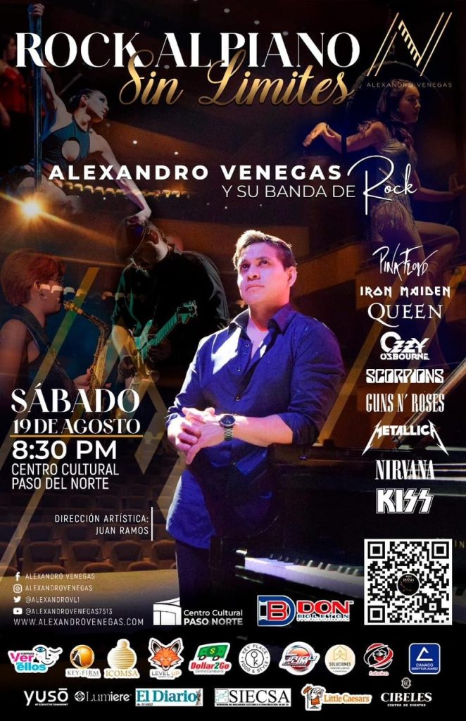 “Rock al Piano, Sin Límites”, es el show que Alexandro presentará este próximo sábado 19 a las 8:30 pm en el Centro Cultural Paso del Norte.