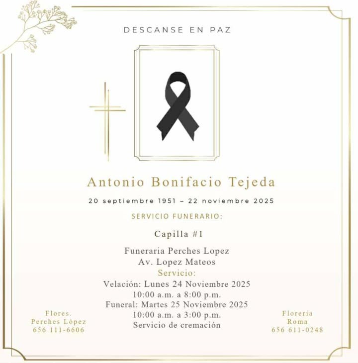 El Tecnológico Nacional de México Campus Ciudad Juárez despide este lunes a uno de sus maestros más emblemáticos: Antonio Bonifacio Tejeda, fallecido el 22 de noviembre de 2025, a los 74 años.
