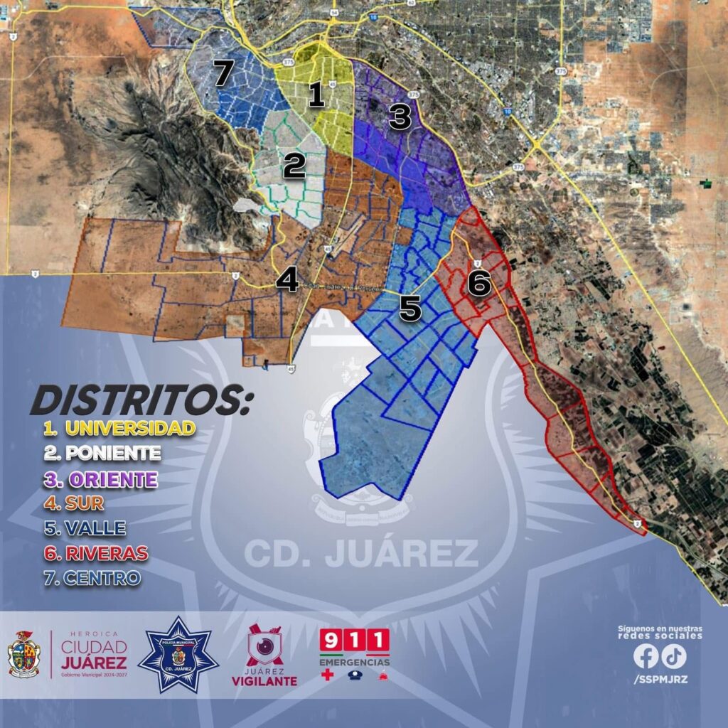 Los distritos Riveras, Valle y Sur conforman el área de mayor expansión urbana de Juárez, identificada por especialistas como parte de los llamados “cinturones de pobreza”, donde la densidad poblacional y las condiciones de vulnerabilidad social han sido factores recurrentes en la incidencia delictiva.