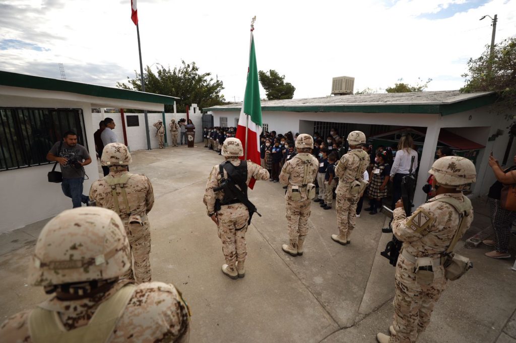 Durante la ceremonia también se celebró el doceavo aniversario de la alianza que se mantiene con la Guarnición Militar de Ciudad Juárez, quienes han participado en las ceremonias cívicas en este espacio particular.