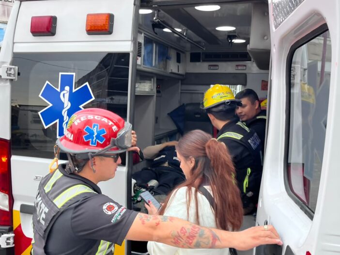 Sin posibilidad de sostenerse, el trabajador cayó desde el tercer nivel y resultó con quemaduras y una fractura de tobillo, por lo que fue trasladado de inmediato a un centro médico.