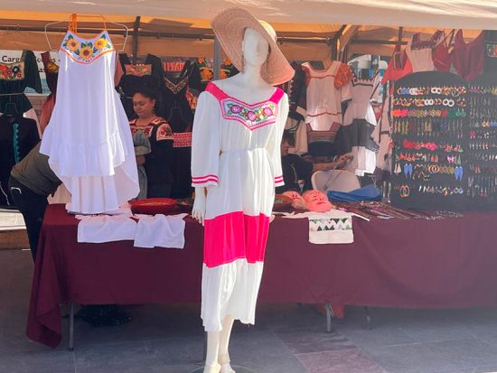 La avenida 16 de Septiembre se convirtió en un corredor de culturas. Entre los puestos se mezclaban los aromas de los platillos tradicionales con el olor a resinas y hierbas medicinales. Sobre las mesas reposaban collares de chaquira, huipiles bordados y figuras talladas en madera. No se trataba solo de vender: los artesanos explicaban el significado de los colores, los símbolos y los tejidos que cada pieza contenía.