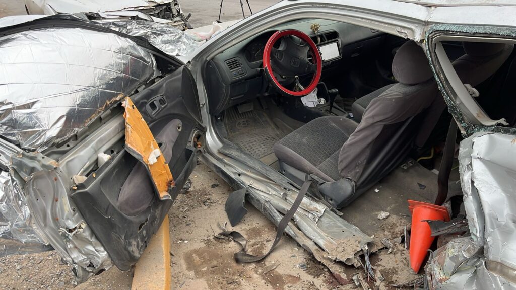El accidente ocurrió la mañana de este miércoles frente a la Universidad Tecnológica de Ciudad Juárez (UTCJ), en el suroriente de la ciudad, cuando los fugitivos —dos hombres que fueron detenidos en el mismo sitio— perdieron el control y chocaron de frente contra el Honda gris en el que viajaban las víctimas, según los primeros testimonios.