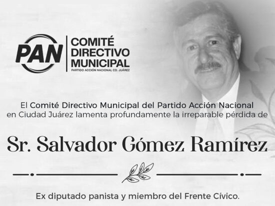 Militantes y exdirigentes del PAN expresaron en redes sociales su pesar por el fallecimiento de Salvador Gómez Ramírez, exdiputado y miembro del Frente Cívico, a quien recordaron como un referente del panismo juarense