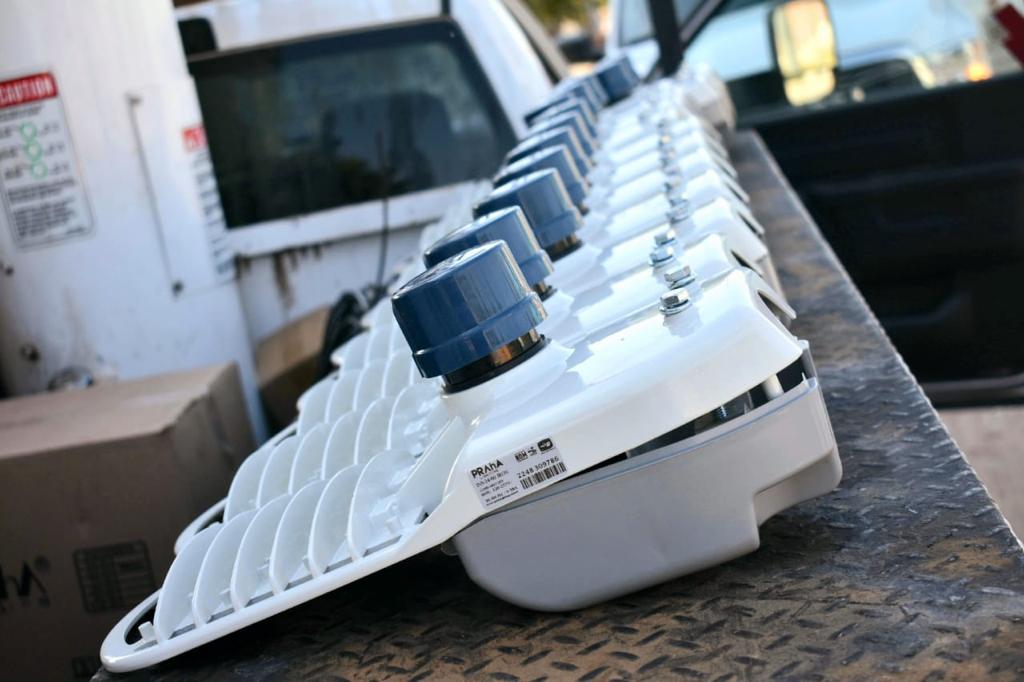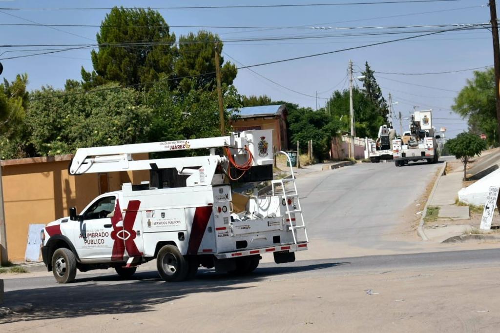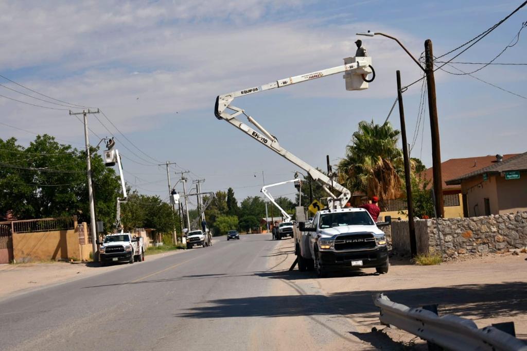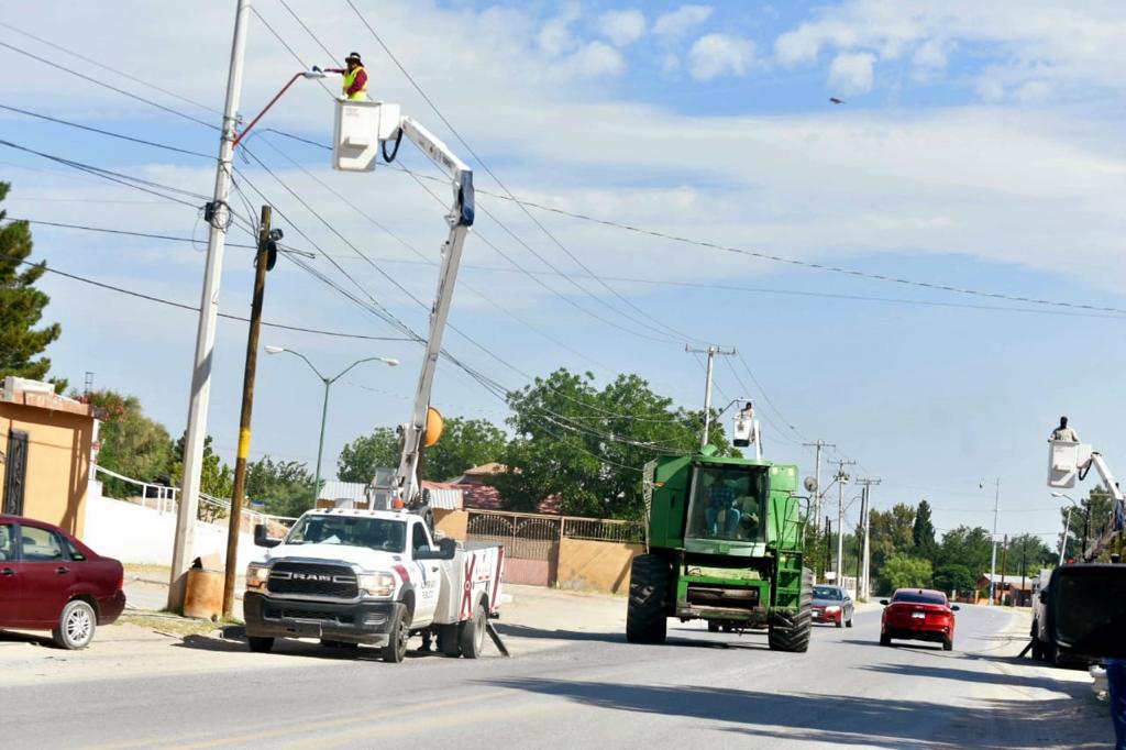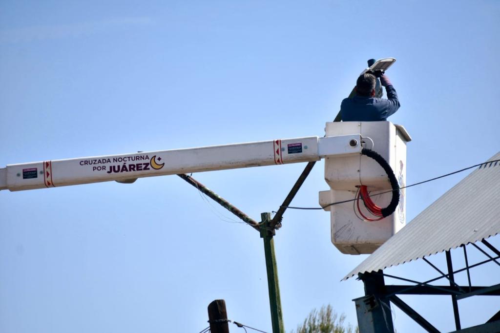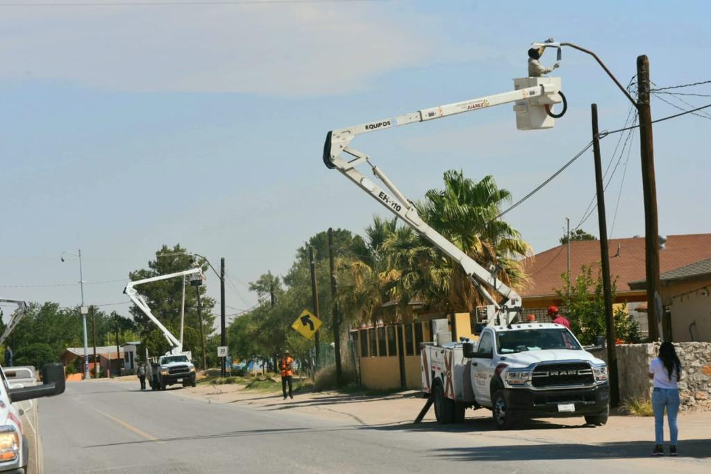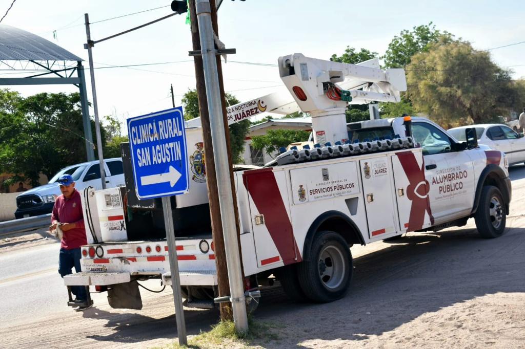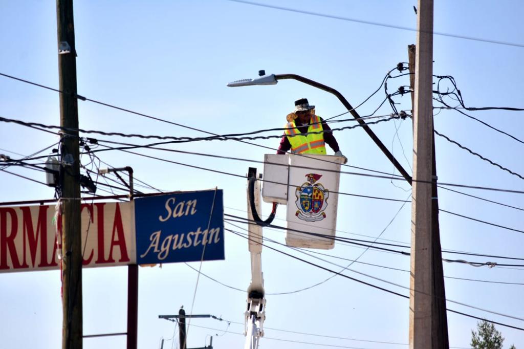Personal de la Dirección de Alumbrado Público trabaja en la instalación de más de 320 luminarias led en el poblado de San Agustín, como parte de la implementación de nueva tecnología para mejorar las condiciones de iluminación en los poblados del Valle de Juárez, informó la Dirección General de Servicios Públicos a través de un comunicado de prensa.