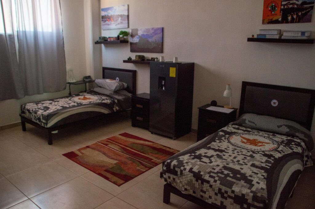 Para los oficiales, se tienen preparados cuartos compartidos, en los que se otorgan camas individuales.