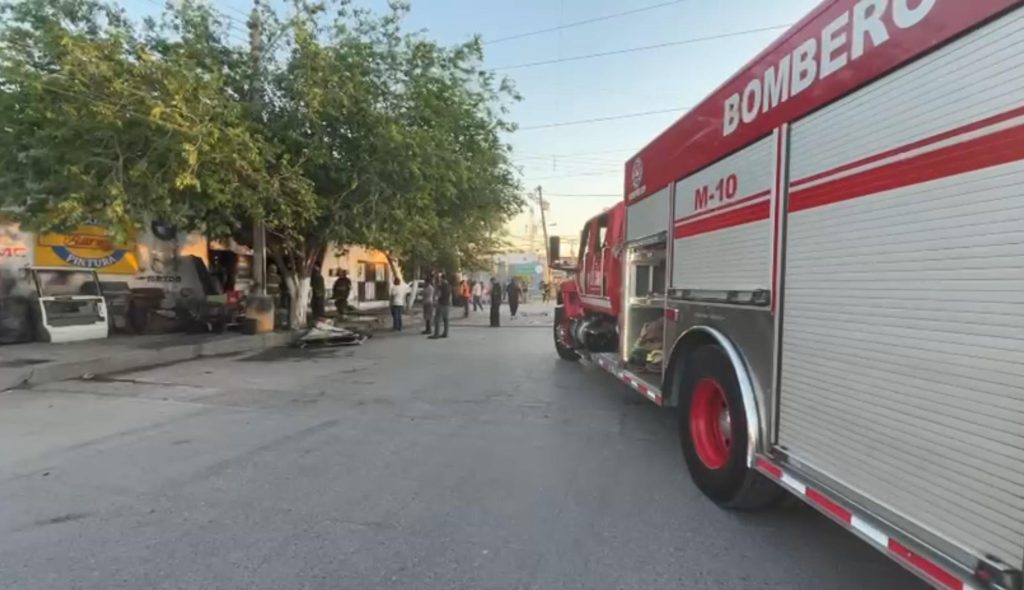 Un incendio en un taller mecánico generó la movilización de elementos del Departamento de Bomberos en la colonia Satélite.