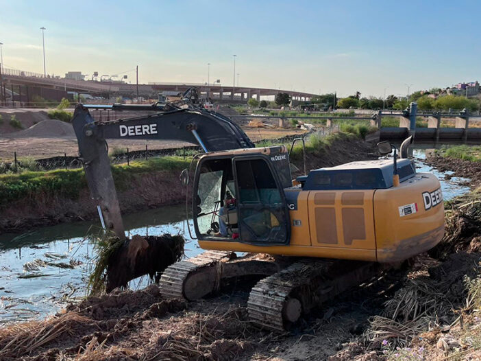 Máquinas retroexcavadoras se usaron los días previos para retirar la vegetación acuática, crecida en el canal pluvial desde que inició la primavera.
