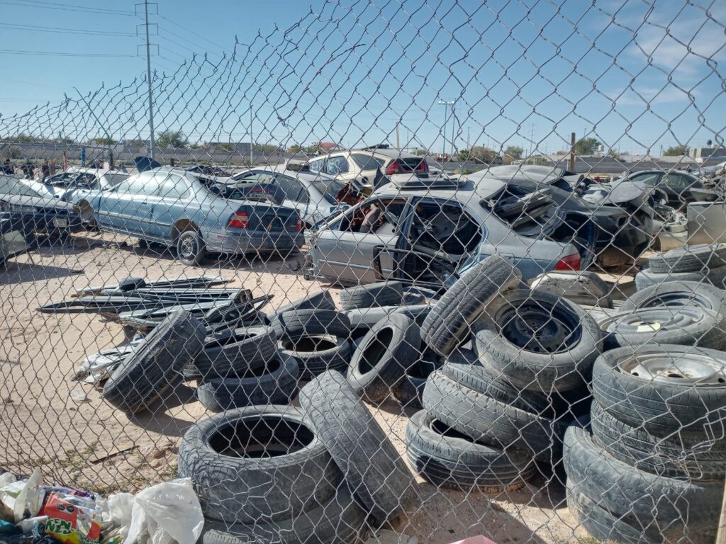 Fuerzas federales y Municipio inspeccionan yonkes en el suroriente; detectan vehículos en banquetas, documentación incompleta, llantas y chatarra que invadían la vía pública