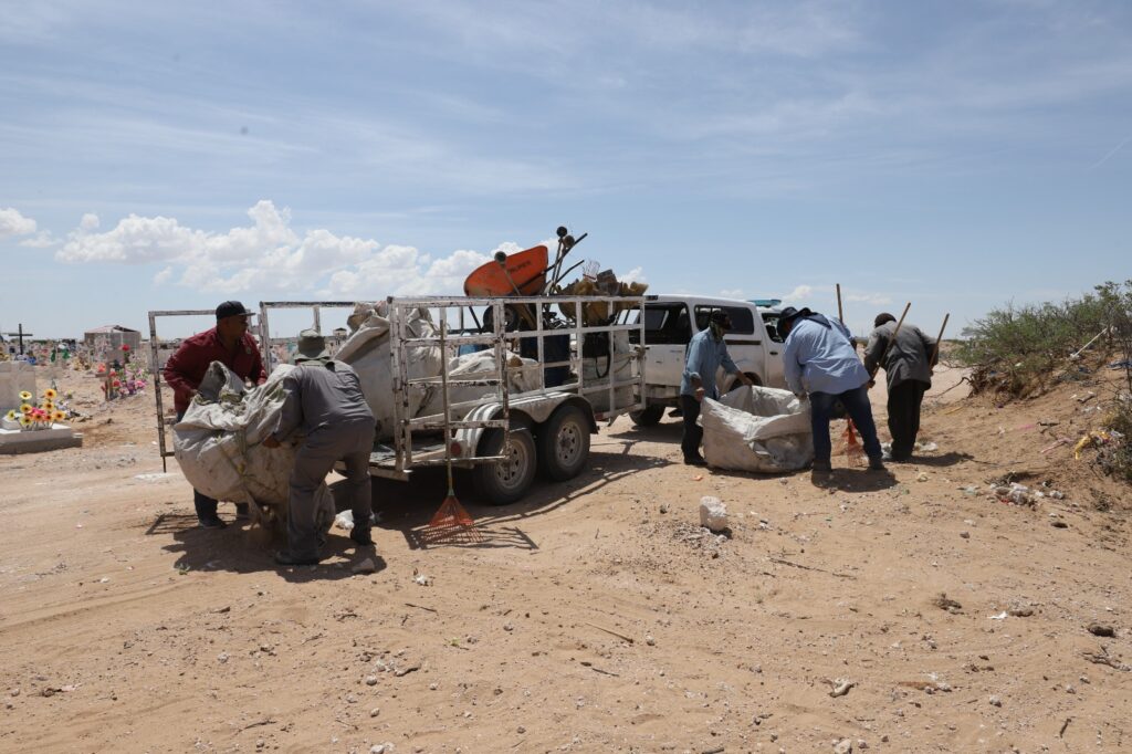 “Tenemos tambos distribuidos a lo largo y ancho del panteón, también hay contenedores de basura para uso de los visitantes, por eso pedimos a las personas que vayan preparadas, solicitamos el apoyo de los juarenses para mantener el espacio público lo más presentable posible porque entendemos la sensibilidad que hay a la hora de visitarlo”, señaló.