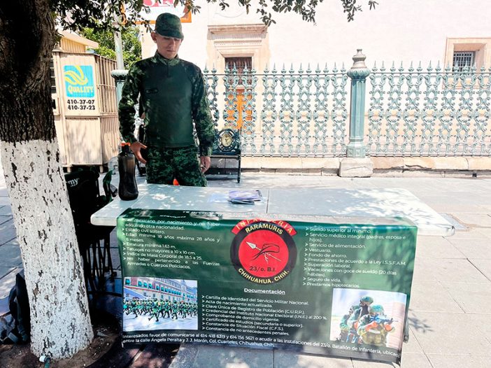 Elementos de la Infantería Rarámuris del 23 Batallón, invitan a los jóvenes a ingresar a la Secretaría de la Defensa Nacional.