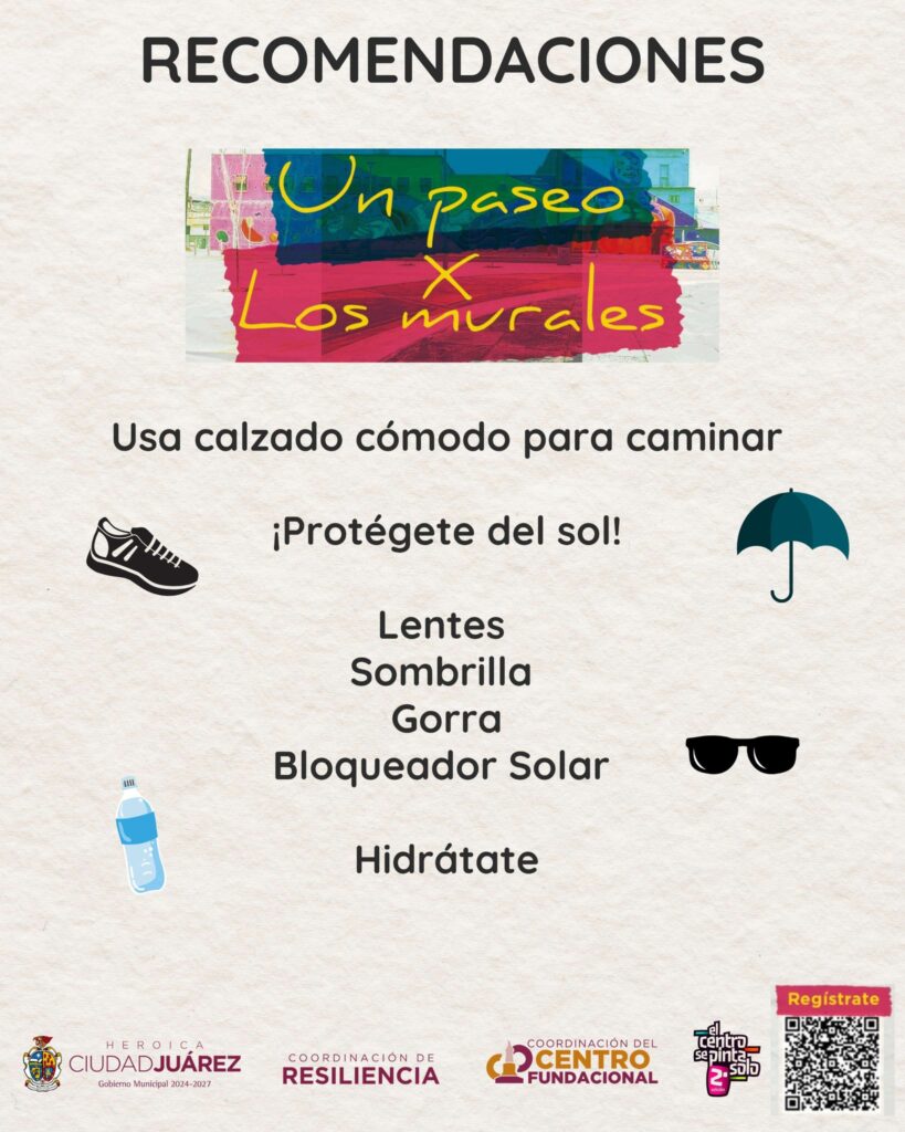 Dijo que para quienes deseen acudir, pueden registrarse mediante el código QR que se encuentra en el promocional del evento, para que además de hacer conciencia de la importancia del peatón, también puedan disfrutar del arte urbano.