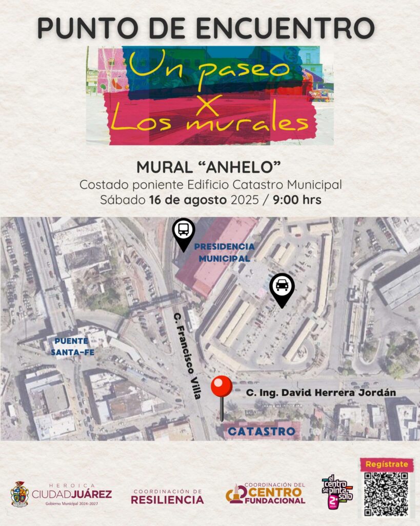 Este sábado 16 de agosto, a las 9:00 de la mañana, se llevará a cabo el recorrido “Un paseo por los murales”, actividad que se organiza de manera conjunta por la Coordinación del Centro Fundacional y la Coordinación de Resiliencia del Municipio.