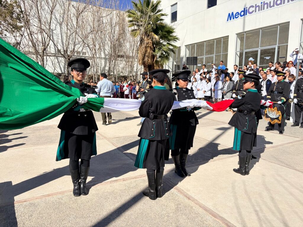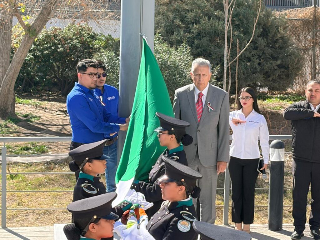 Tras las palabras de los funcionarios invitados al evento, Enrique Serrano Escobar izó el pabellón nacional y todos los presentes rindieron honores a la bandera y entonaron los himnos nacional y de Chihuahua, con el apoyo de la banda de guerra y escolta de la Universidad Tecnológica Paso del Norte y la presencia de alumnos de la Escuela Primaria Altavista.