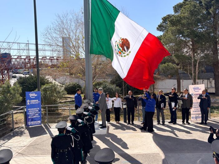 “Es un símbolo máximo de nuestra nacionalidad, que nos identifica y nos une a los mexicanos; desde hace muchos años, en este edificio tenemos un astabandera muy grande, pero no tenía bandera y, entonces, en coordinación con la Secretaría de Salud de Gobierno del Estado y con el apoyo del Fideicomiso de Puentes Fronterizos que nos hizo el favor de donarnos la bandera, hicimos una ceremonia sencilla de abanderamiento”, declaró Enrique Serrano Escobar, director del Consejo Estatal de Población (Coespo).