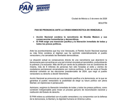 Responsabiliza PAN a Maduro de la tragedia venezolana y pide transición pacífica