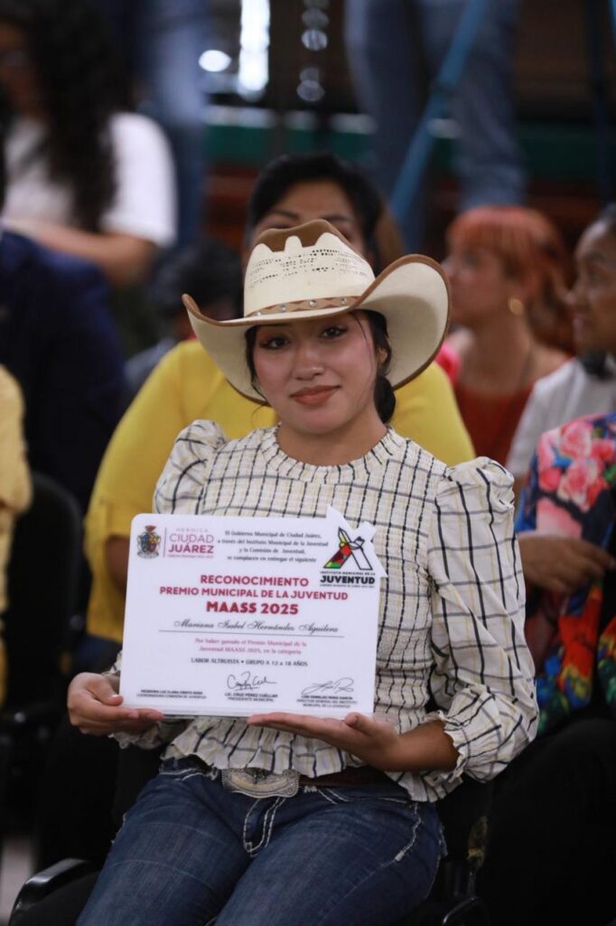 En el Día Internacional de la Juventud, el Ayuntamiento entregó el Premio Municipal Gustavo Maass a talentos juarenses de entre 12 y 29 años que destacan en academia, arte, deporte, emprendimiento y labor social.