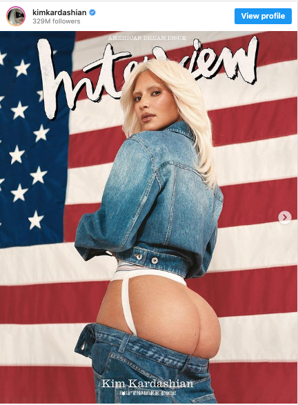 De acuerdo con la información, la celebridad recurrió a sus redes sociales para compartir detalles de su reciente colaboración con la revista Interview, para la que posó ataviada con diminutas prendas de ropa interior y bikinis alusivas a American Proud.