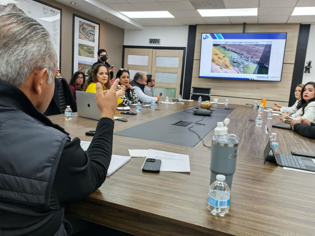 Regidores de la Comisión de Ecología del Ayuntamiento sesionaron en las oficinas de la Junta Municipal de Agua y Saneamiento (JMAS), junto al titular de la descentralizada, Sergio Nevárez Rodríguez, quien acompañado de su personal técnico, informó sobre los trabajos de saneamiento que realizan en la Acequia Madre, luego de que por un mes descargaron aguas negras en su arroyo, debido a la reconstrucción del Colector Norzagaray.