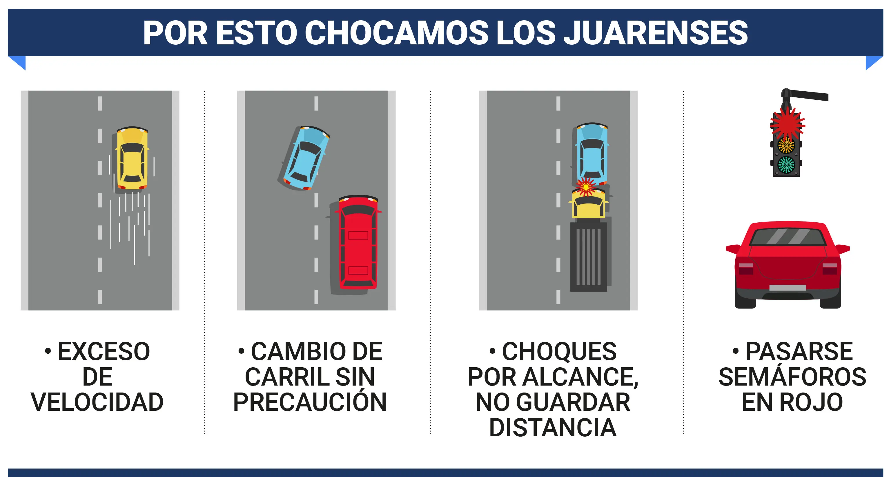 Otras de las razones más comunes por las que suceden accidentes de tráfico en Juárez se encuentra el exceso de velocidad, cambiarse de carril sin precaución, choques por alcance, por no mantener la distancia apropiada entre unidades, y que los conductores que se pasan semáforos en luz roja, dice Tapia.