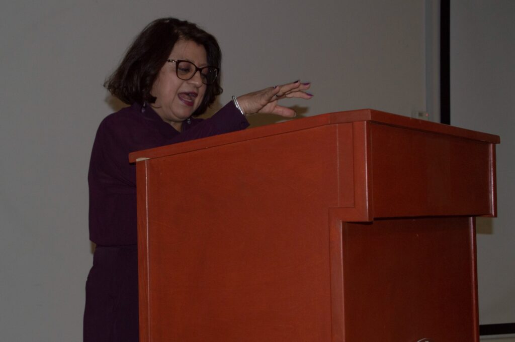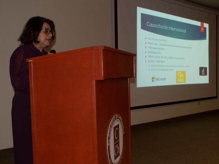La mañana de este miércoles, en las instalaciones del auditorio Carlos Herrera del Colegio de Chihuahua, la exfiscal en el combate a la trata de personas, Guillermina Cabrera, impartió una conferencia magistral en la que compartió sus logros y experiencias en la investigación de delitos que atentan contra la dignidad humana de niñas, niños y mujeres