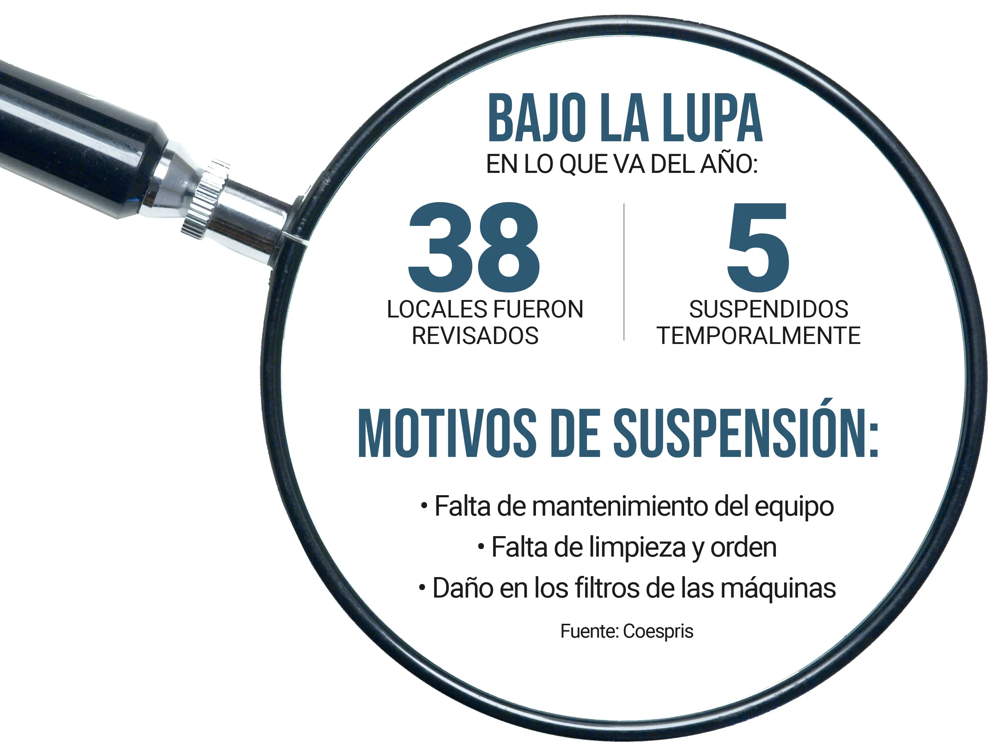 Tan solo en lo que va del año, la Coespris ha realizado 38 revisiones a purificadoras de agua y ha emitido cinco suspensiones temporales por falta de mantenimiento del equipo, de limpieza y orden, así como daño en los filtros de las máquinas. Esas acciones se dieron para prevenir riesgos sanitarios.