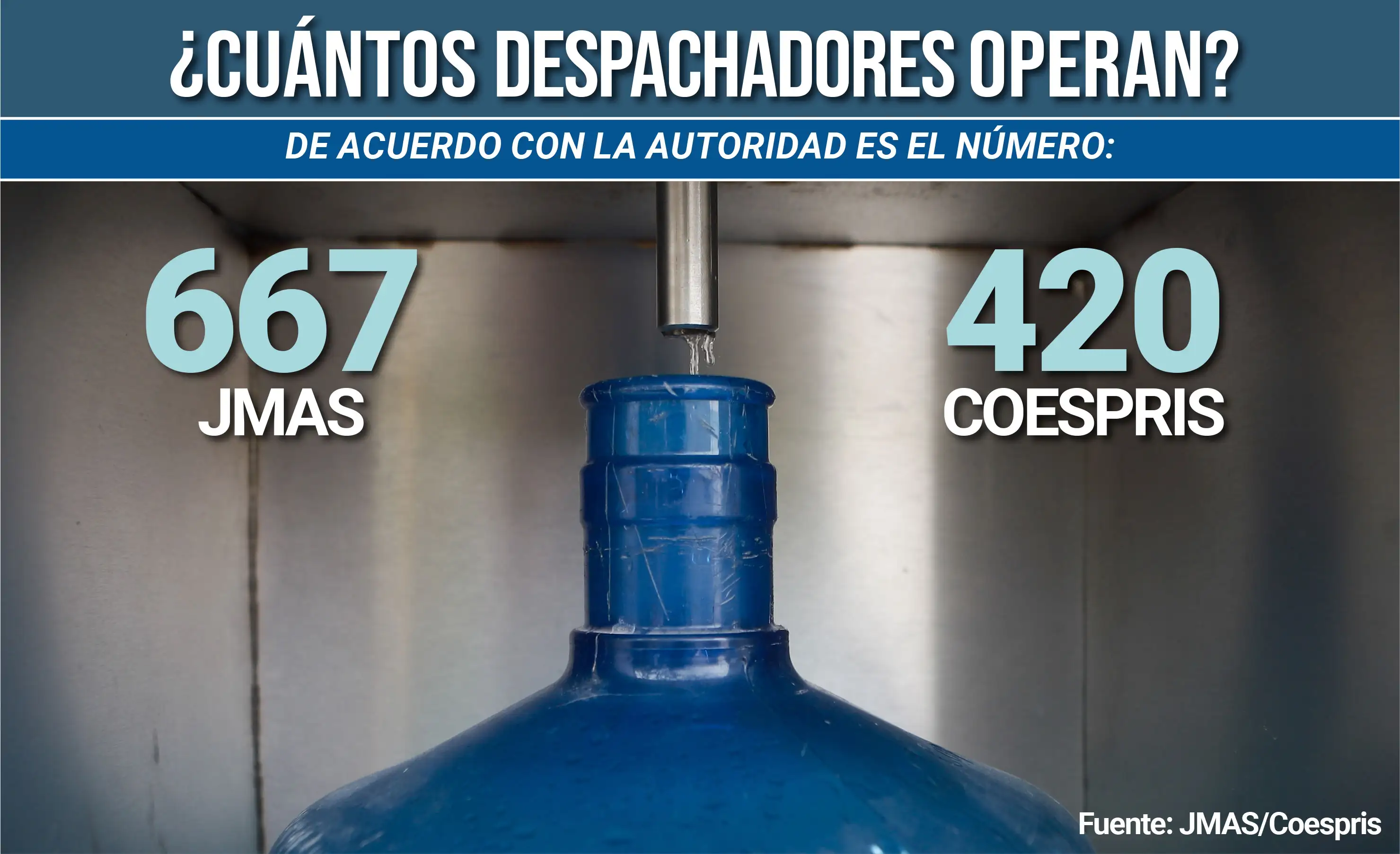 En contraste, la Coespris dio a conocer que cuenta con un padrón de solo 420 establecimientos que trabajan bajo la reglamentación vigente. Su padrón no contempla a todas las purificadoras que operan en la ciudad, concede, como muestra, el contraste de sus cifras con las registradas por la JMAS.