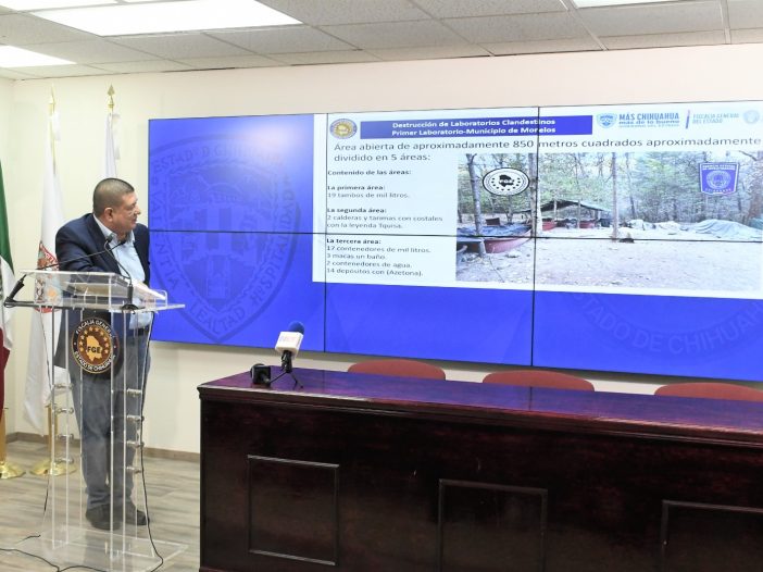 Chihuahua, Chih.- La Fiscalía General del Estado informó del hallazgo y destrucción de dos laboratorios clandestinos para la producción de drogas sintéticas en el municipio de Morelos, en una zona serrana colindante con Guachochi.