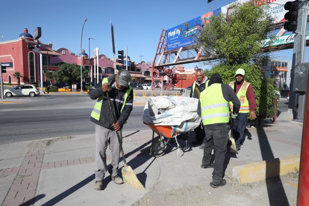 El Gobierno Municipal llevó a cabo este día trabajos de limpieza que vendrán a complementarse con las acciones que tendrán lugar esta noche en la C4ruzada Nocturna en el corredor comercial Manuel Gómez Morín.