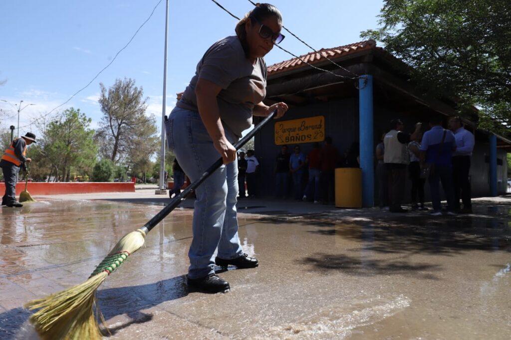 Con el apoyo de comerciantes del lugar, la Dirección General de Servicios Públicos, a través de la Dirección de Limpia, llevó a cabo la quinta jornada de limpieza y mejoramiento en el Parque Borunda.