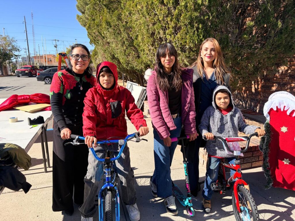 Durante el acto de entrega del donativo al Santa Bombero, Evolet, Christian y Adrián, tres niños que acuden al Centro Comunitario de la UACJ en la colonia Parajes del Sur y que forman parte del proyecto “Apoyo Educativo”, se convirtieron en los primeros en recibir un juguete en estas fiestas navideñas.