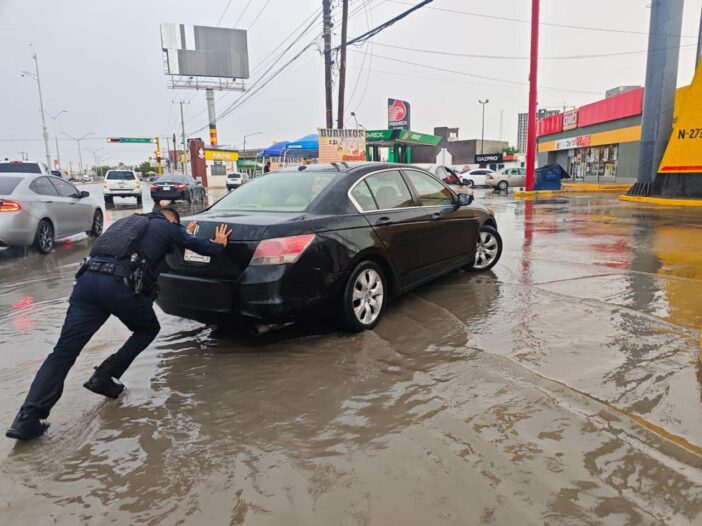 Durante la noche de ayer y esta madrugada elementos de la Secretaría de Seguridad Pública Municipal (SSPM) auxiliaron a ciudadanos cuyos vehículos se quedaron varados en calles inundadas.