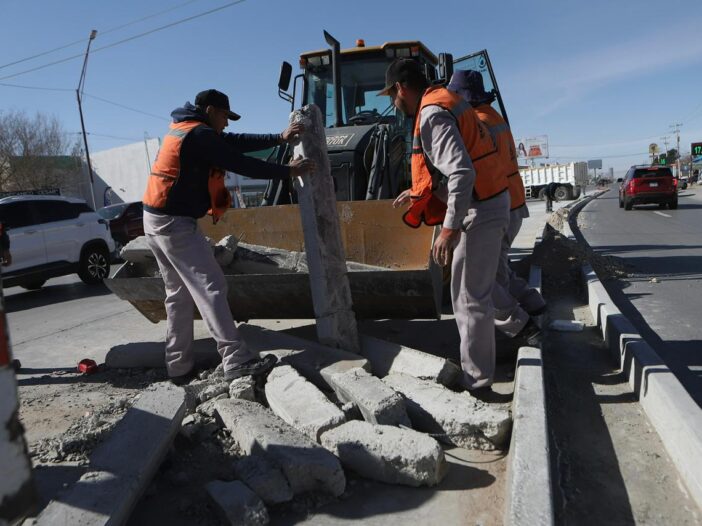 La Coordinación General de Seguridad Vial (CGSV) pidió apoyo a la Junta Municipal de Agua y Saneamiento (JMAS) para retirar una guarnición de la avenida Waterfill, en el rediseño que se hará de la vía de acceso al puente internacional Zaragoza.