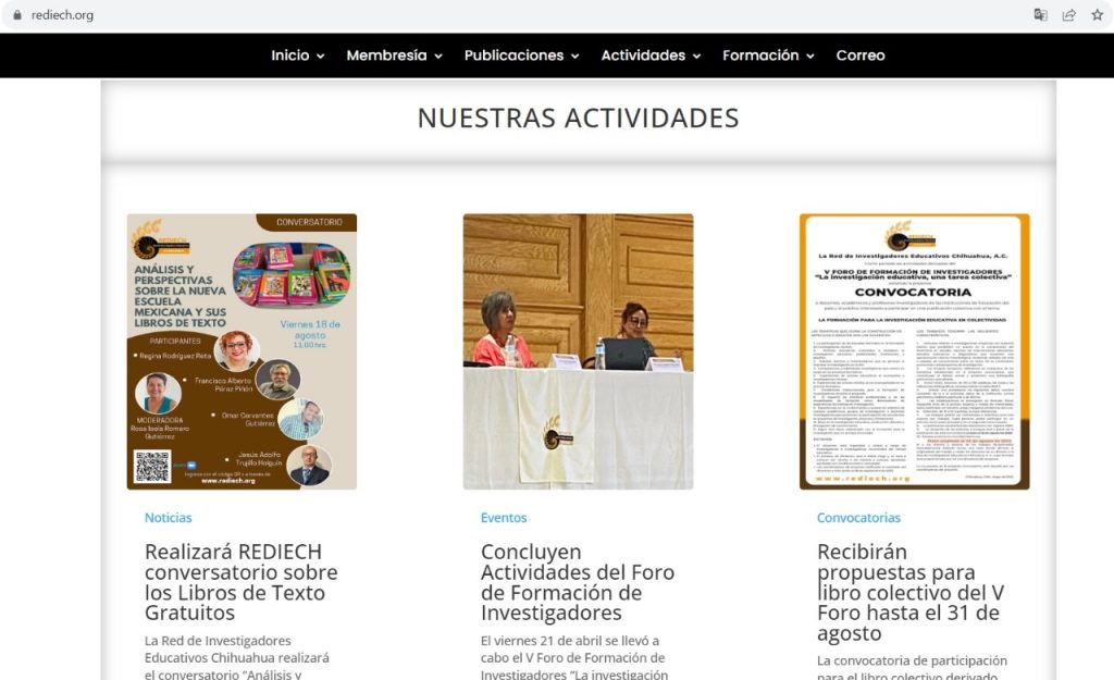 En su fanpage la Rediech expone material sobre la formación para la investigación educativa en colectividad, además de análisis y perspectivas sobre la Nueva Escuela Mexicana y sus libros de texto, con investigadores e investigadoras como Regina Rodríguez Reta, Francisco Alberto Pérez Piñón, Omar Cervantes Gutiérrez y Jesús Adolfo Trujillo Holguín.