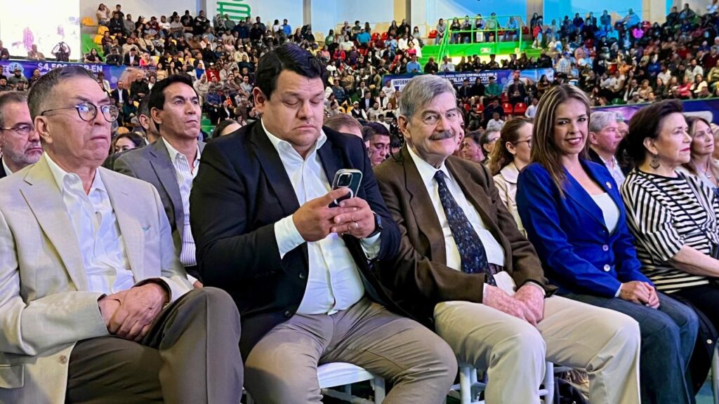 El funcionario habló durante casi una hora ante un gimnasio del Colegio de Bachilleres lleno de empleados, vecinos, funcionarios estatales y empresarios. En el presídium, el exgobernador Francisco Barrio fue el único invitado que provocó aplausos al ser presentado.