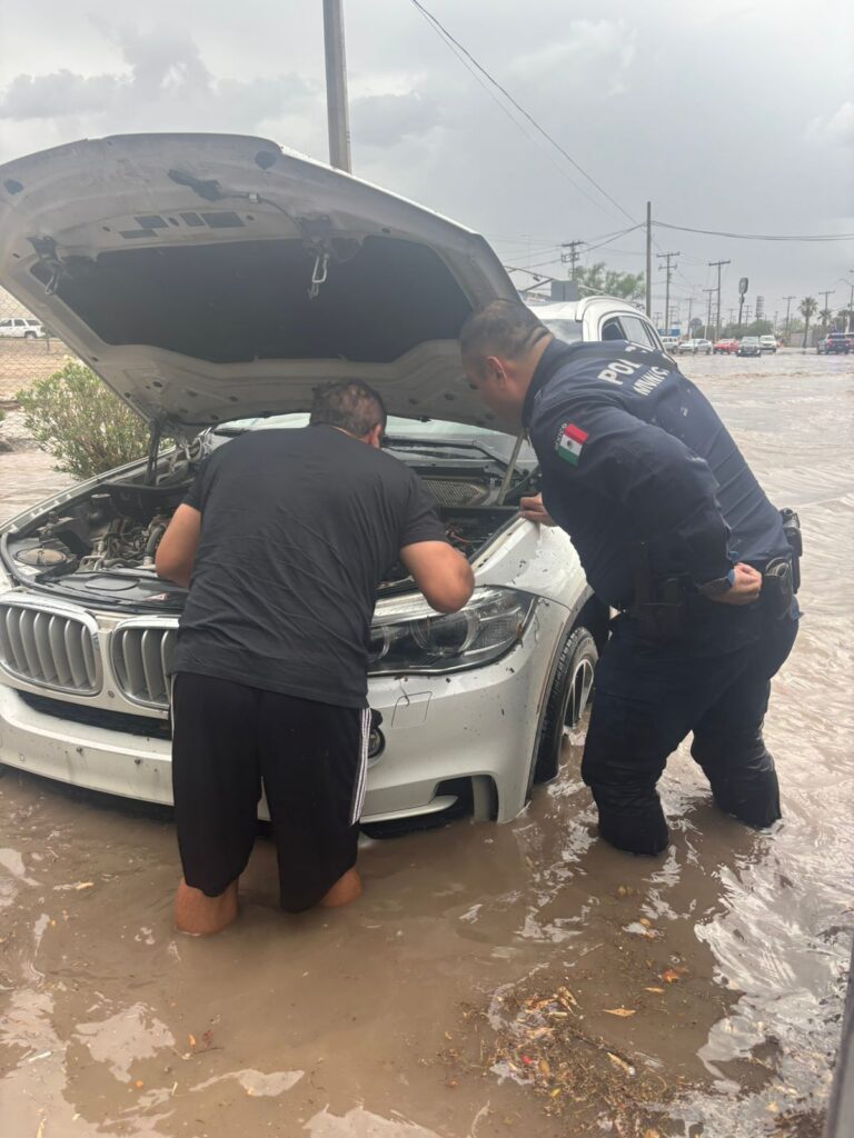 Automóviles varados, vecinos atrapados en banquetas y policías municipales convertidos en rescatistas improvisados. La escena fue digna de una crónica de desastres, pero con tintes de esperanza.