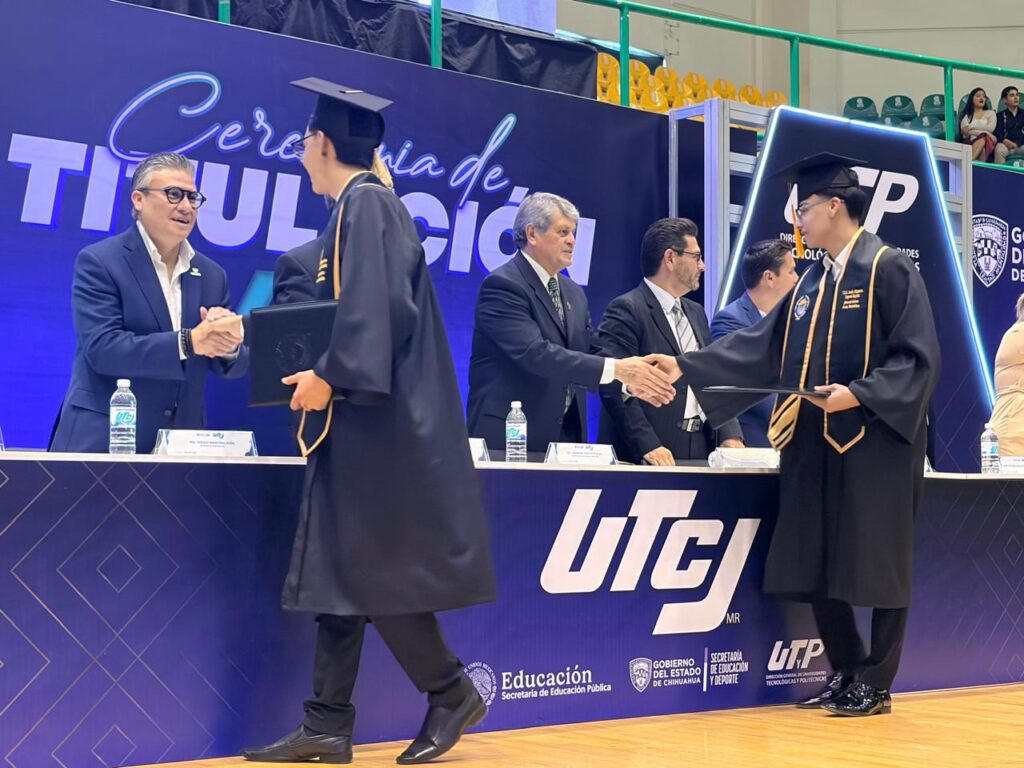En dos ceremonias celebradas este jueves en el Gimnasio del Colegio de Bachilleres, la Universidad Tecnológica de Ciudad Juárez (UTCJ), tituló a mil 298 egresados de Técnico Superior Universitario (TSU), ingenierías y licenciaturas.