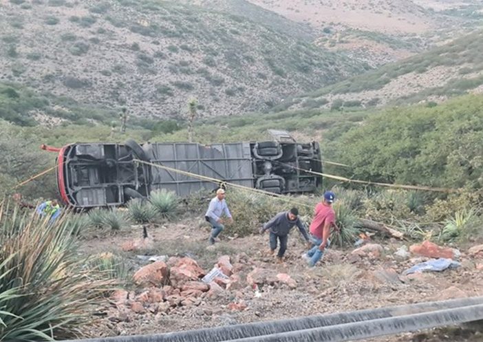 La Fiscalía General del Estado de San Luis Potosí (FGESLP) actualizó a nueve las personas que perecieron y 25 resultaron lesionadas, cuando el camión de pasajeros en el que viajaban, de la empresa Frontera, se volcó ayer en en la carretera federal número 80 San Luis-Lagos de Moreno, y cayó a un barranco en la comunidad de Escalerillas.