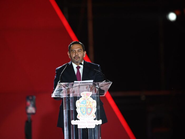 En su mensaje a la ciudadanía, el alcalde juarenses enalteció el trabajo que realizan los empleados municipales, quienes señaló como los responsables de la “buena gestión” de la ciudad.