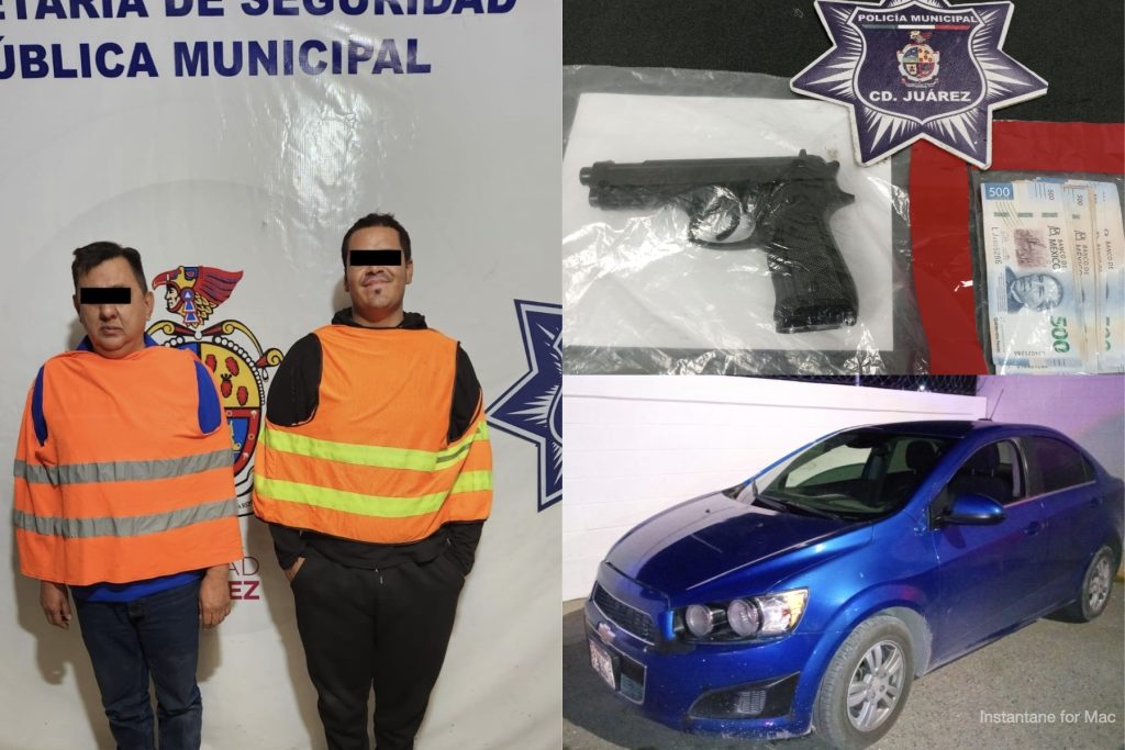 Motivo por el cual abordaron a dichos sujetos y al realizarles una inspección preventiva por protocolos de seguridad localizaron en el interior del automotor una pistola que resultó ser de utilería, además del dinero propiedad de afectado, procediendo con su detención, añade el comunicado.