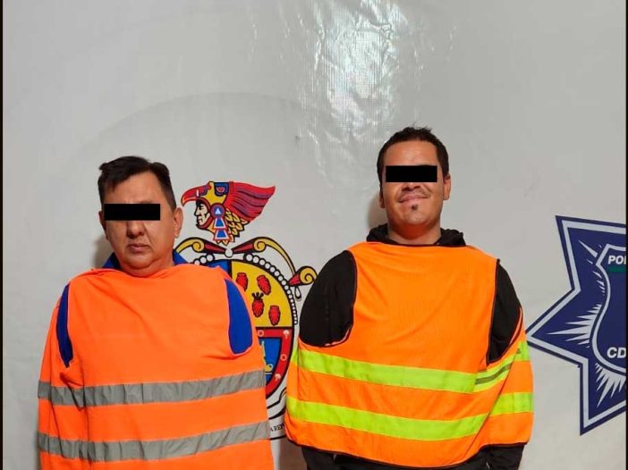 Elementos de la Secretaría de Seguridad Pública Municipal arrestaron Carlos Alberto A. S. y Octavio A. P., acusados de asaltar una persona en las calles del fraccionamiento Paseo del Bosque.