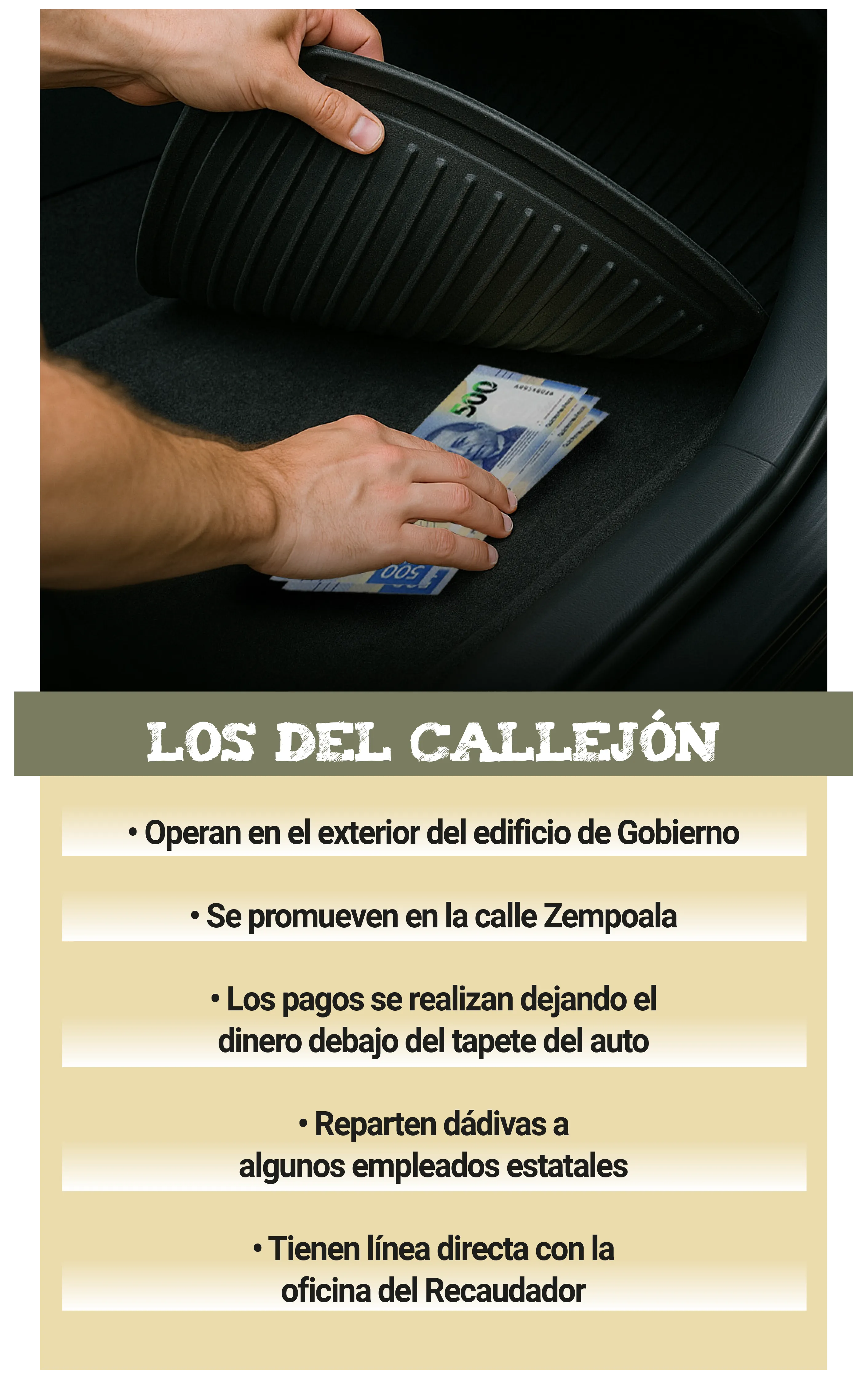 Los operadores de mafias conocidas como Los Godínez y los del Callejón de la Zempoala, operan dentro y fuera de Recaudación, prestando sus servicios muchas veces a los loteros y particulares que los contratan para que les garanticen la autorización de los trámites vehiculares.