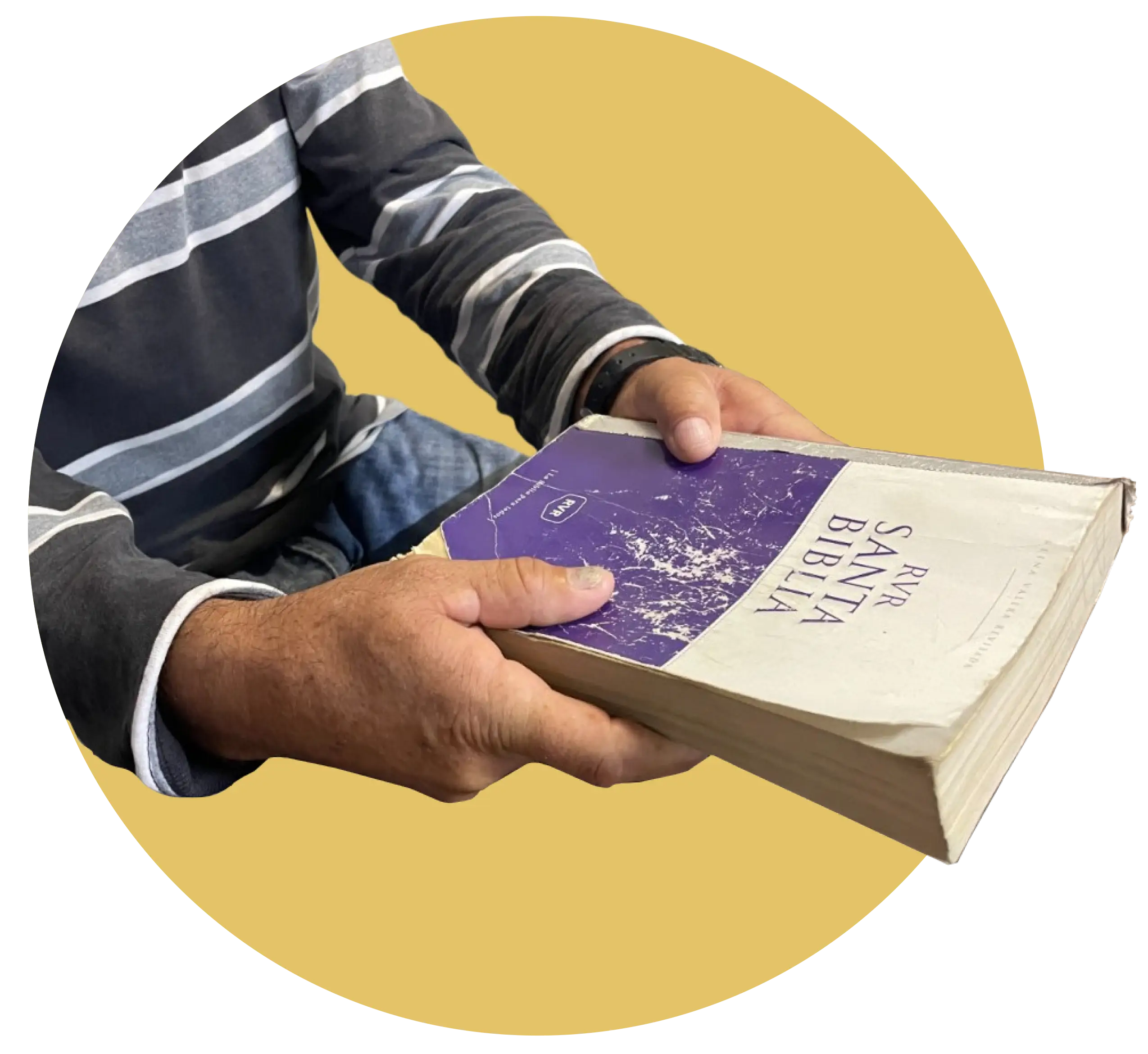 “Ya estoy grande, ya tengo 55”, dijo al tomar con sus manos una Biblia que le prestaron en el albergue. “Ya no sé cuánto tiempo pueda vivir, pero ya no quiero pasarla mal”, concluyó.