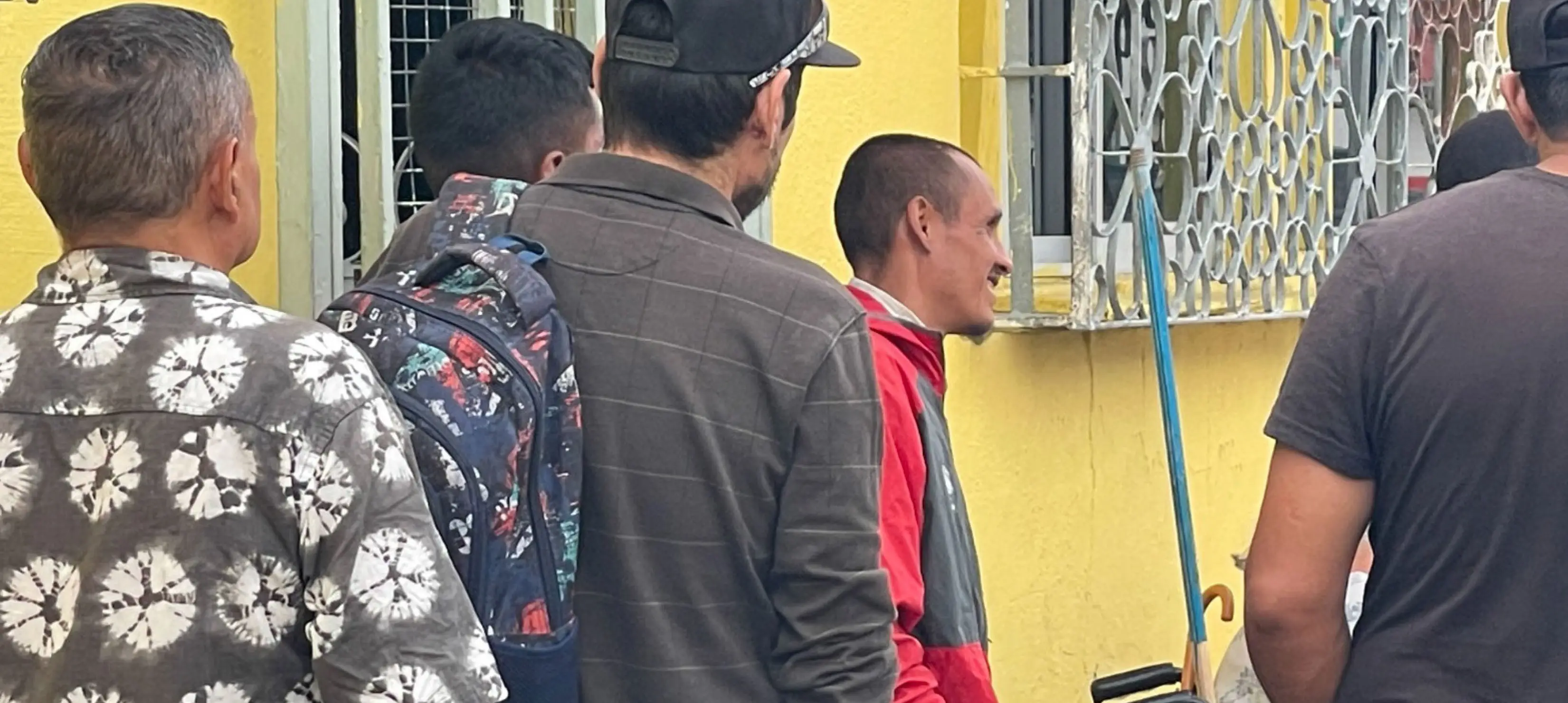 Son las ocho de la mañana. Un grupo de gente se reúne afuera del albergue La Esperanza; son personas en situación de calle que esperan recibir un plato de comida caliente. Es una escena común que se observa a esa hora en el lugar, de lunes a sábado.