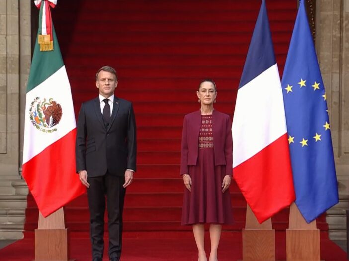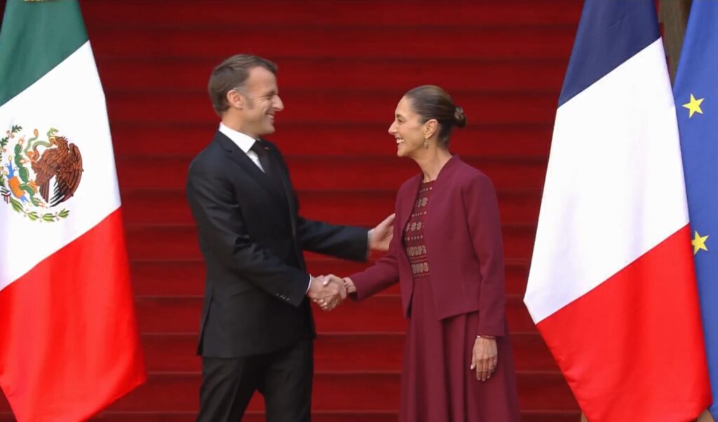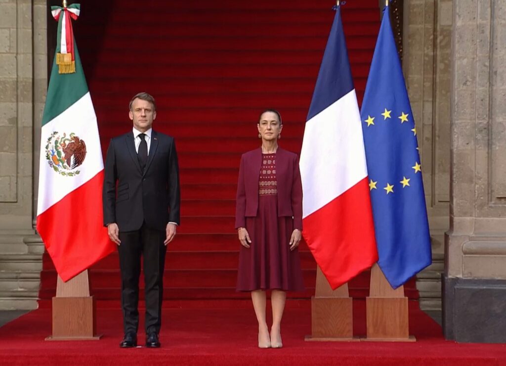 La presidenta de México, Claudia Sheinbaum Pardo, recibió esta mañana en Palacio Nacional al presidente de Francia, Emmanuel Macron, quien realiza una visita oficial a México como parte de su gira por América Latina.