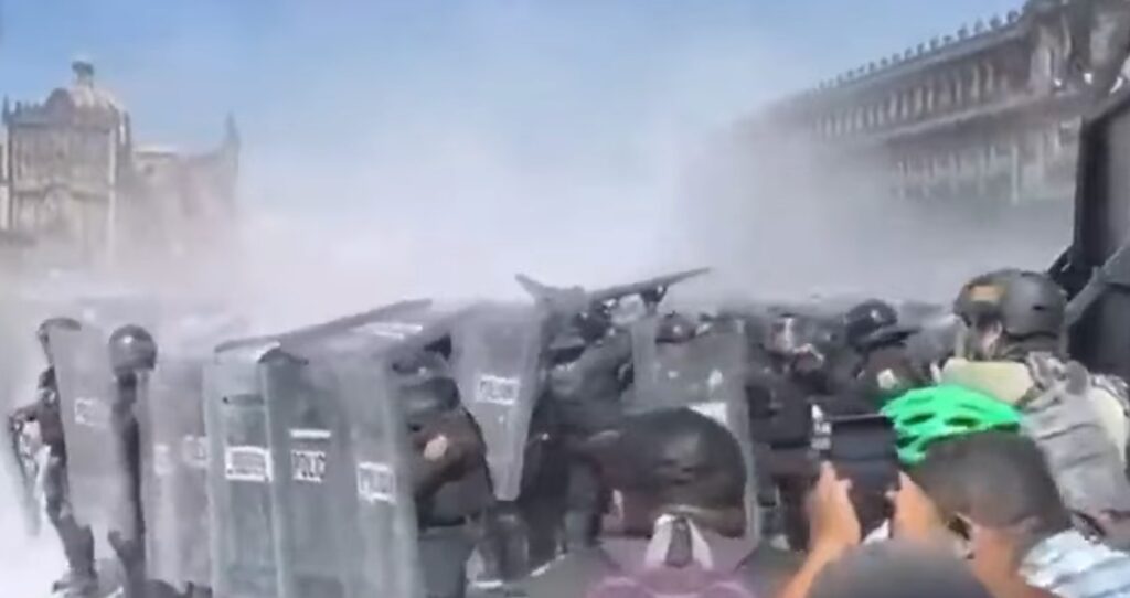 El uso de extintores —visible en varios videos difundidos en redes— generó mayor descontrol y obligó a los elementos a replegarse momentáneamente hacia el área interior de Palacio Nacional.