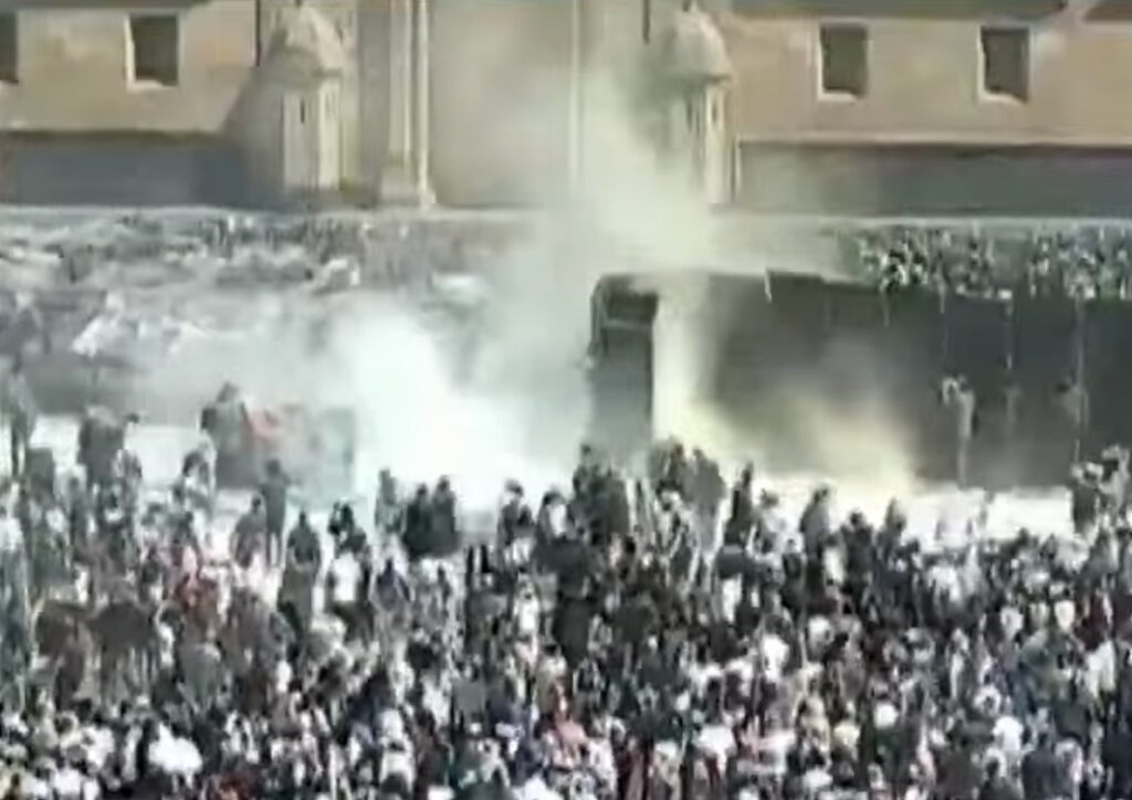 Las imágenes del momento muestran caos, gritos y una nube blanca cubriendo la entrada principal del recinto.